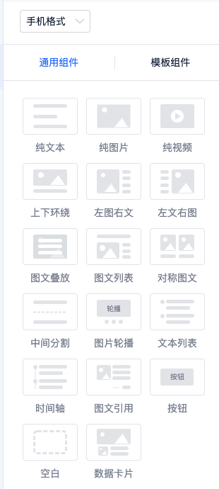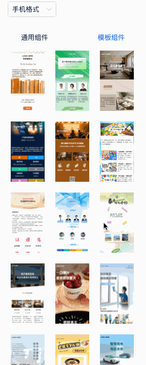 我们可以自由选择是用通用组件还是用模板组件,也可以混搭。这里我以混合搭配方式,手机格式为例: