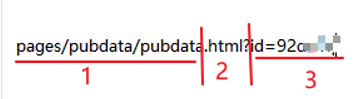 举例:如下图是获取到的对应的小程序页面路径,只将标号1的部分配置到拉起明文中,标号3的部分为参数在结果页-提交跳转-小程序参数中填入即可。标号2的部分可忽略。